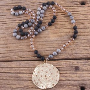 Long bead necklace with golden charm