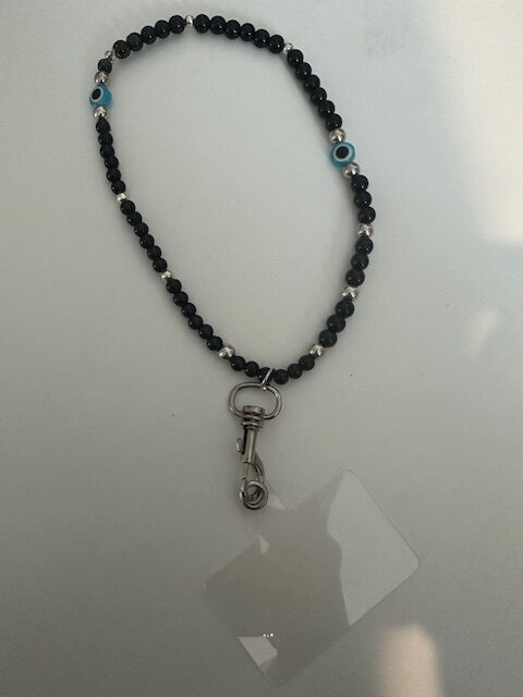 Black beads with evil eye phone holder
